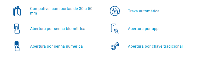 | Total de senhas | 300 (biométricas+númericas+cartão de acesso) |
